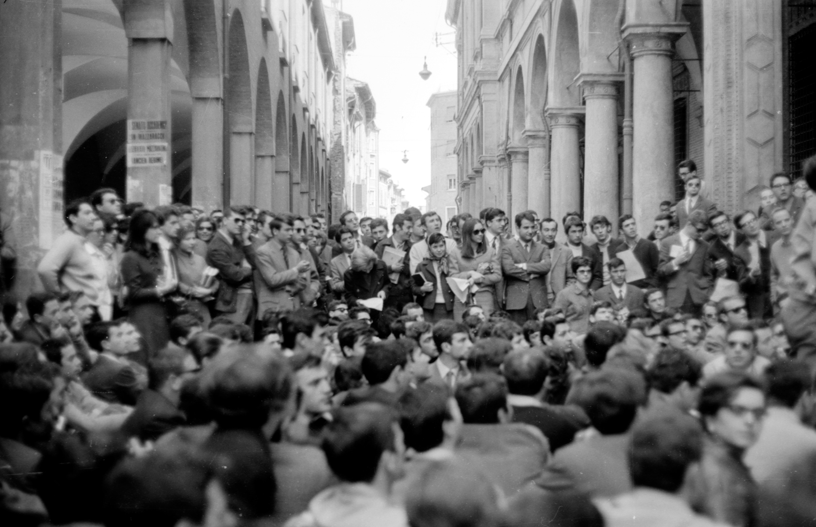 Il ’68 degli studenti universitari bolognesi inizia già nei primi mesi del 1967. Negli ultimi giorni di gennaio vengono occupati in rapida successione diversi istituti e l’aula magna dell’Ateneo, provocando il rinvio dell’inaugurazione dell’anno accademico.