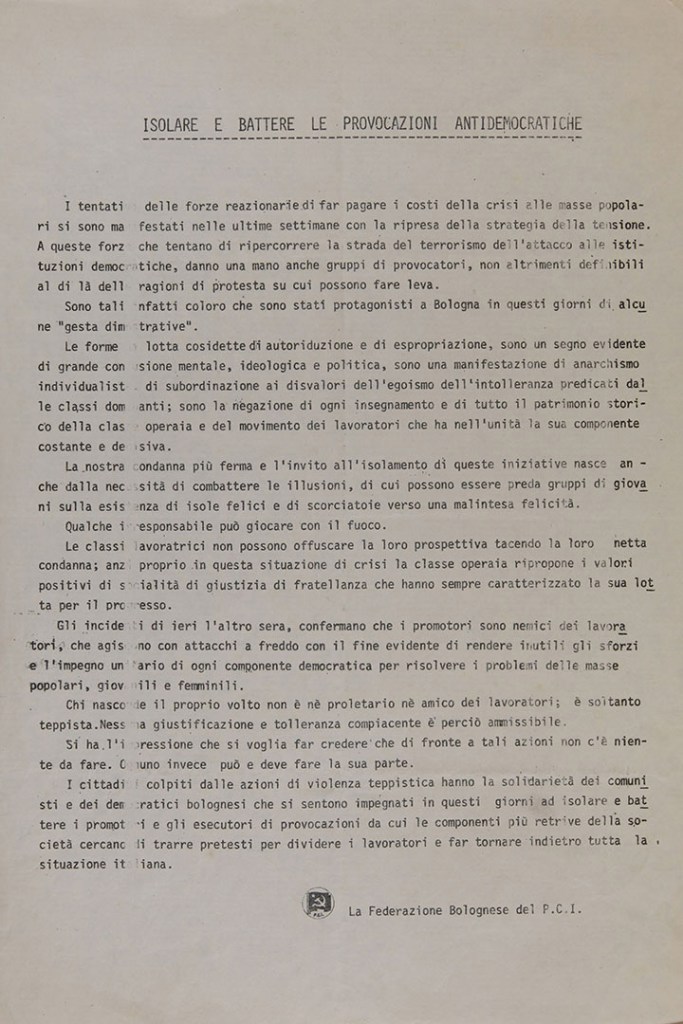 Nell’inverno 1976-1977 la città di Bologna è in fermento: il movimento studentesco, i collettivi femministi, il mondo intellettuale, le organizzazioni politiche e sindacali seguono con partecipazione gli eventi che scuotono la società italiana. E le posizioni sono contrapposte.